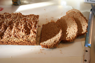 PREPARATION: Preheat oven to 400 degrees Fahrenheit. Stir the dry ingredients together in a large bowl with a wooden spoon or a whisk. Stir in buttermilk to form a soft dough. Spray a loaf pan with canola oil spray and roll mixture into pan. Smooth dough out to sides. Sprinkle the top liberally with sesame seeds.